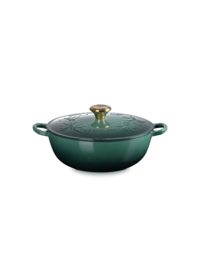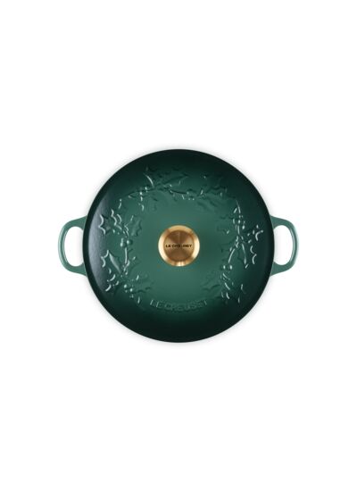 Embossé de feuillage houx et couronné d’un bouton doré, la marmite de notre collection Couronne Enchantée en édition limitée deviendra un classique instantané et un héritage précieux. Faites-en la star de votre table, remplie de bourguignon ou d’une copieuse soupe de Noël.