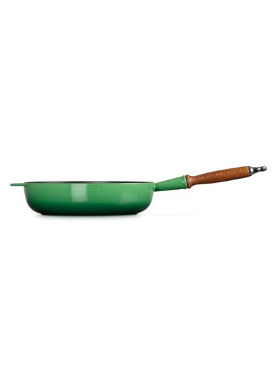 Notre sauteuse Tradition en fonte émaillée est une pure merveille pour faire rissoler et pour préparer toutes sortes de délicieux repas. Ses parois hautes sont idéales pour faire mijoter des plats en sauce, ses lignes sont modernes, son manche en bois reste à température et sa poignée d’assistance permet de la tenir et de la déplacer en tout sécurité. Cette superbe sauteuse s’utilise sur la source de chaleur de votre choix, mais ne passe pas au four. Ne la mettez pas non plus au lave-vaisselle pour préserver sa poignée en bois.