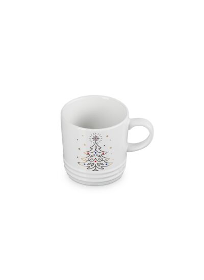 Célébrez la magie des fêtes avec cette tasse en grès ornée d'une application dorée représentant le célèbre Sapin de Noël. Présentée dans une boîte individuelle, cette tasse est idéale pour remplir une chaussette et sa taille est idéale pour un café, un thé ou un chocolat chaud réconfortant.