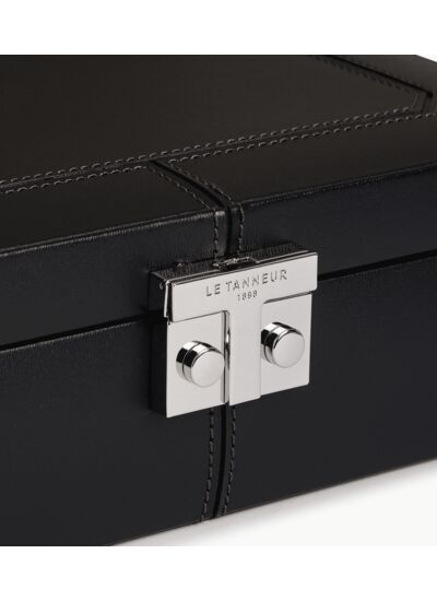 Le fermoir signature Le Tanneur, finition argentée, assure une fermeture fiable tout en apportant une touche de distinction et d’élégance, renforçant le caractère haut de gamme du coffret.