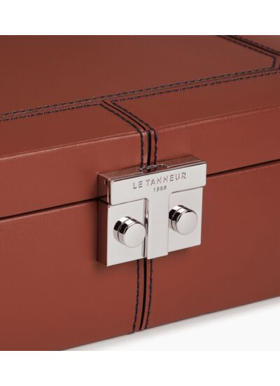 Le fermoir signature Le Tanneur, finition argentée, assure une fermeture fiable tout en apportant une touche de distinction et d’élégance, renforçant le caractère haut de gamme du coffret.