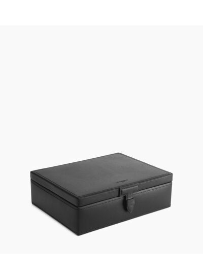 Le coffret mesure 25 cm de largeur, 19 cm de hauteur et 7 cm de profondeur, un format compact qui facilite son rangement tout en offrant une capacité généreuse pour vos montres.