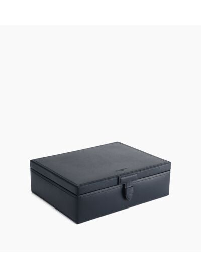 Comment se ferme le coffret ? Le coffret se ferme avec un fermoir en T signature Le Tanneur, assurant une fermeture sécurisée tout en apportant une touche de sophistication discrète.