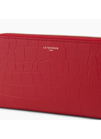 Compagnon zippé avec éléments métalliques finition doré clair.Cuir de vachette pleine fleur façon croco. Doublure textile Le Bleu.3 poches plates et 1 poche zippée, 2 soufflets 14 compartiments cartes.Accessoires métalliques finition doré clair.Largeur : 19 cm x Hauteur : 11 cm