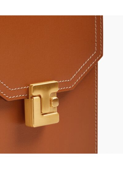 Étui téléphone tour de cou à rabat avec fermoir signature finition doré brossé. Dispose d'une protection RFID.Cuir de vachette pleine fleur lisse. Doublure textile jacquard noir.1 compartiment pour téléphone avec soufflet. 3 compartiments cartes et 1 poche plate arrière.Accessoires métalliques finition doré brossé.Largeur : 11 cm x Hauteur : 18 cm