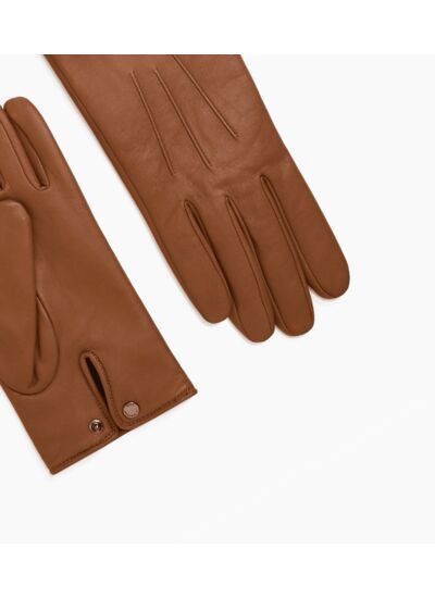 Gants en cuir haut de gamme avec doublure alpaga et rivets gravés signature de la Maison.Cuir d’agneau pleine fleur. Doublure en alpaga.