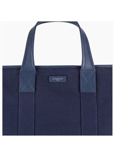 Grand cabas en toile et cuir tannage végétal. Brodé Le Tanneur. Porté main ou épaule grâce à sa bandoulière amovible et ajustable.Toile de coton garnie cuir de vachette pleine fleurBandoulière amovible et ajustable.Accessoires métalliques finition argentLargeur : 39 cm x Hauteur : 17 cm x Profondeur : 34 cm