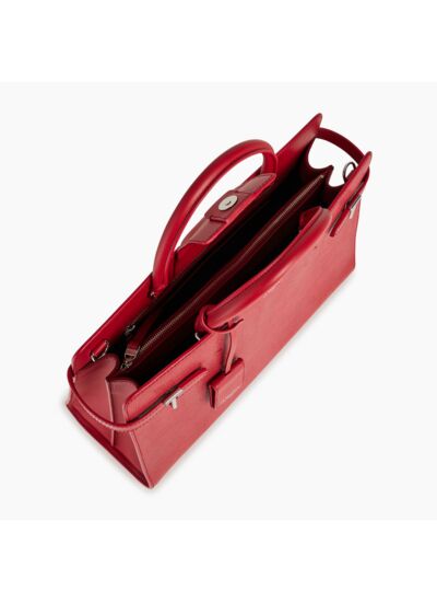 Grand sac à main en cuir embossé lézard finition argent, avec poignées toron et trois compartiments dont un zippé. Pièces T métalliques signature de la ligne. Charms embossé Le Tanneur amovible. Porté main, épaule ou croisé grâce à sa bandoulière ajustable et amovible.Cuir de vachette pleine fleur embossé lézard. Doublure textile.2 poches plates, 2 poches zippées. 1 poche plate arrière. Bandoulière amovible et ajustable.Accessoires métalliques finition argent.Largeur : 35 cm x Hauteur : 27 cm x Profondeur : 12 cm