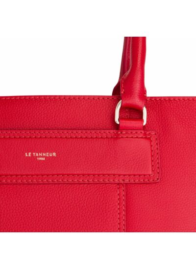 Grand sac cabas avec jeu de découpe et assemblage en T identitaire. Poignées toron. Porté main.Cuir de vachette pleine fleur grainé. Doublure textile.1 poche plate, 1 mousqueton clés et 1 poche zippée. 1 poche plate avant.Accessoire métallique finition doré clair.Largeur : 28 cm x Hauteur : 30 cm x Profondeur : 12 cm