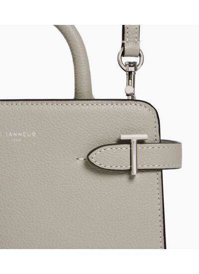 Sac à main mini modèle avec double T métallique signature et charms amovible. Marquage Le Tanneur sur film argenté clair. Porté main, épaule ou croisé grâce à sa bandoulière ajustable et amovible.Cuir de vachette pleine fleur grainé. Doublure textile Le Bleu.1 poche plate. Bandoulière ajustable et amovibleAccessoires métalliques finition argent.Largeur : 19 cm x Hauteur : 14 cm x Profondeur : 6 cm