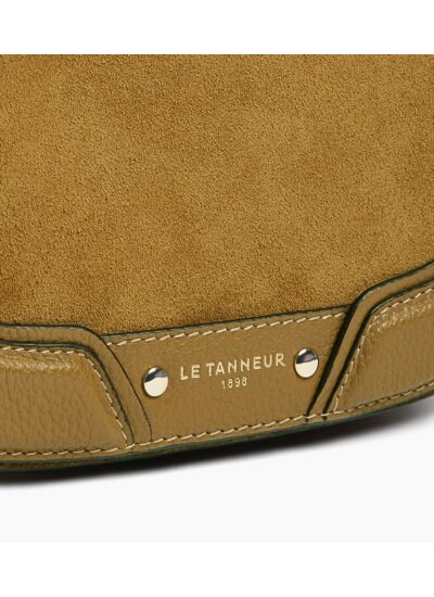 Besace petit modèle en cuir grainé et nubuck, avec fermeture aimantée, marquage Le Tanneur et intérieur jacquard anniversaire 125 ans. Porté main, croisé ou épaule grâce à sa bandoulière ajustable et sa poignée amovible ajustée au corps du sac.Cuir de vachette grainé et suède pleine fleur et refente de cuir. Doublure textile jacquard anniversaire noir.1 poche plate, 1 poche zippée et 1 poche plate. Mousqueton clés. 1 poche plate arrière. Poignée amovible. Bandoulière ajustable et amovible.Accessoires métalliques finition doré clair.Largeur : 19 cm x Hauteur : 15 cm x Profondeur : 7.5 cm