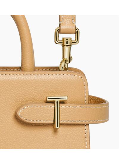 Petit sac à main avec poignées toron et trois compartiments dont un zippé. Pièces T métalliques signature de la ligne. Charms embossé Le Tanneur amovible. Porté main, épaule ou croisé grâce à sa bandoulière ajustable et amovible.Cuir de vachette pleine fleur grainé. Doublure textile Le Bleu.2 poches plates et 1 poche zippée. Bandoulière ajustable et amovible.Accessoires métalliques finition doré clair.Largeur : 22 cm x Hauteur : 17 cm x Profondeur : 10 cm