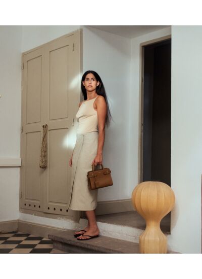 Quels sont les détails de finition qui distinguent ce sac ? Il est orné des fermoirs T emblématiques de la Maison Le Tanneur, dispose de patins de protection pour préserver sa base et d’un charm amovible pour personnaliser votre style.