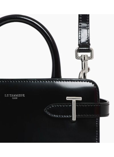 Sac à main petit modèle avec double T signature, charms amovible et doublure jacquard anniversaire. Marquage Le Tanneur et éléments métalliques finition argent. Porté main, épaule ou croisé grâce à sa bandoulière ajustable et amovible.Cuir corrigé de vachette effet box. Doublure textile jacquard anniversaire noir.2 poches plates et 1 poche zippée. Bandoulière ajustable et amovible.Accessoires métalliques finition argent.Largeur : 22 cm x Hauteur : 17 cm x Profondeur : 10 cm