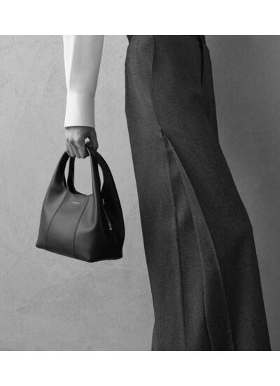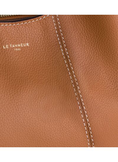 Ce petit sac à main souple, en cuir grainé et aux lignes sans découpe. Il se porte à la main, à l'épaule ou croisé avec sa bandoulière amovible.Cuir de vachette pleine fleur grainé. Doublure coton bleu marine1 poche zippée. 1 poche plate avant et arrière. Bandoulière amovible et ajustable.Accessoires métalliques finition doré clair.Largeur : 24 cm x Hauteur : 18 cm x Profondeur : 13 cm