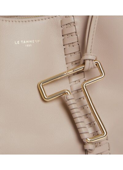 Petit sac à main avec charms T et franges signature. Marquage Le Tanneur et éléments métalliques finition doré clair. Porté main, épaule ou croisé avec sa bandoulière amovible.Cuir de vachette pleine fleur grainé. Doublure textile jacquard.1 poche zippée. 1 poche plate avant et arrière. Bandoulière ajustable et amovible.Accessoires métalliques finition doré clair.Largeur : 21.5 cm x Hauteur : 18.5 cm x Profondeur : 12 cm