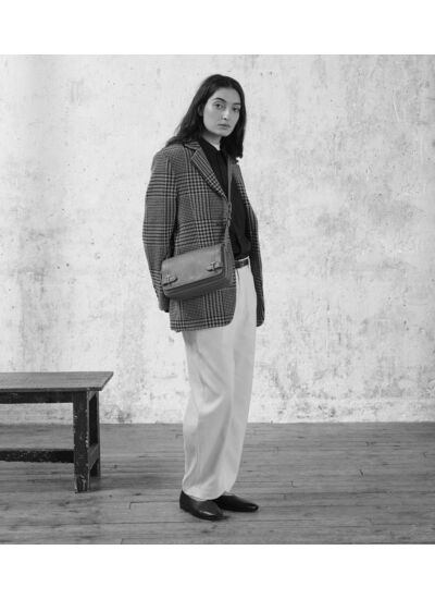 Petit sac bandoulière deux soufflets avec double T signature. Porté épaule ou croisé grâce à sa bandoulière ajustable.Cuir de vachette pleine fleur grainé. Doublure textile Le Bleu.2 poches plates et 1 poche zippée. 2 soufflets zippés, 1 poche arrière, bouton aimanté. Bandoulière ajustable et mini bandoulière porté épaule.Accessoires métalliques finition argent.Largeur : 26 cm x Hauteur : 16 cm x Profondeur : 7 cm
