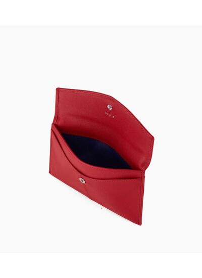 Comment est organisée l’intérieur de cette pochette enveloppe ? Elle dispose de deux poches plates à l’intérieur pour organiser vos essentiels et d’une poche plate arrière, offrant un rangement pratique sans encombrement.