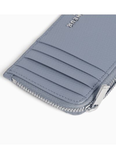Quels détails distinguent ce porte carte des autres modèles ? Ce modèle se démarque par son marquage en métal laqué ton sur ton, sa doublure textile jacquard crépuscule et ses accessoires métalliques finition argent canon de fusil, alliant sophistication et fonctionnalité.