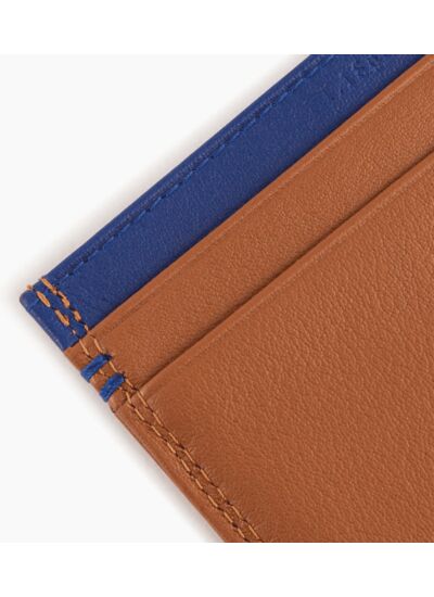 Comment se distingue le design de ce porte-cartes ? Il se caractérise par un discret marquage Le Tanneur en bleu, accompagné d’un double point cousu main dans le même ton, soulignant un savoir-faire artisanal et une élégance subtile.