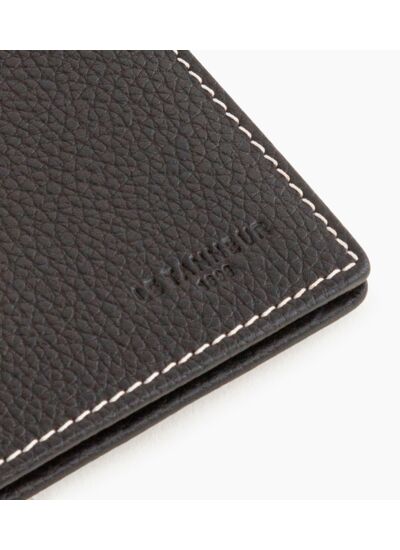 Porte-cartes moyen modèle avec marquage Le Tanneur ton sur ton et piqûres contrastées.Cuir de vachette pleine fleur grainé. Doublure textile.4 poches plates, 1 poche ID, 2 poches billets et 3 compartiments cartes.Accessoires métalliques finition argent.Largeur : 9 cm x Hauteur : 11 cm