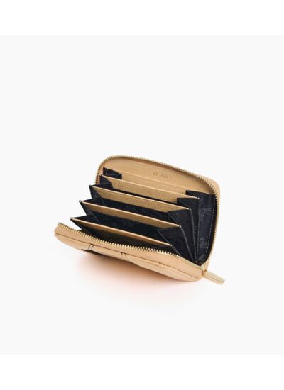 Porte-cartes zippé avec intérieur accordéon et marquage Le Tanneur.Cuir de vachette grainé pleine fleur. Doublure textile jacquard anniversaire noir.1 poche zippée accordéon avec 5 soufflets. 2 compartiments cartes.Accessoires métalliques finition doré clair.Largeur : 11 cm x Hauteur : 8 cm x Profondeur : 2 cm