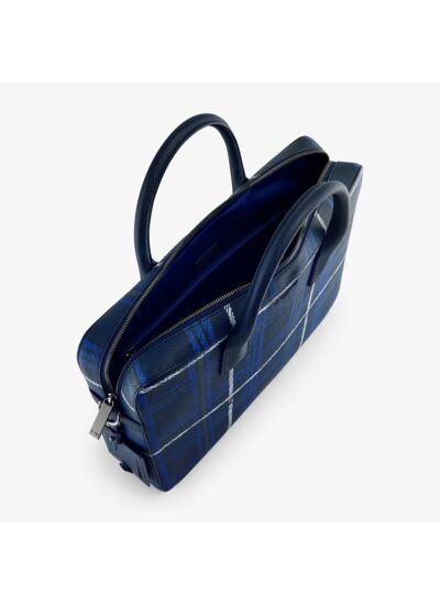 Porte-documents slim 14 finition canon de fusil avec poche ordinateur, passant trolley, charms amovible et marquage Le Tanneur en lettres métal canon de fusil. Porté main, épaule ou croisé grâce à sa bandoulière ajustable et amovible."Cuir de vachette grain T imprimé. Doublure textile Le Bleu.1 poche moussée ordinateur, 1 bouton pression, 1 poche zippée. Passant trolley.Accessoires métalliques finition canon de fusil.Largeur : 36 cm x Hauteur : 29 cm x Profondeur : 7 cm