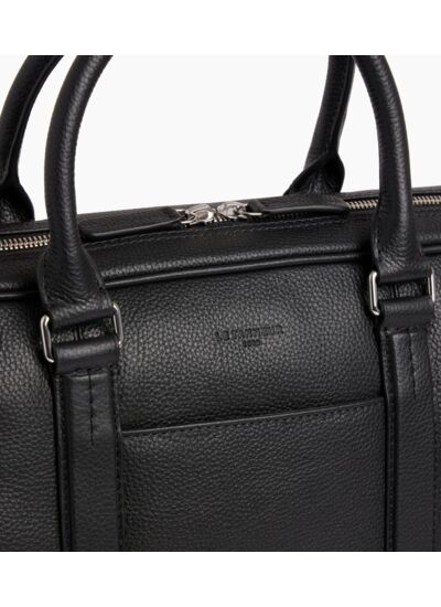 Porte-documents avec poche ordinateur 17. Embossage Le Tanneur ton sur ton et éléments métalliques finition argent. Porté main, épaule ou croisé grâce à sa bandoulière ajustable et amovible."Cuir de vachette pleine fleur grainé. Doublure textile Le Bleu.1 poche plate avant. 1 poche zippée, 2 poches plates, 3 passants stylos, et 1 poche moussée ordinateur et 1 poche zippée arrière. 1 passant trolley. Bandoulière ajustable et amovible.Accessoires métalliques finition argent.Largeur : 42 cm x Hauteur : 32 cm x Profondeur : 7 cm