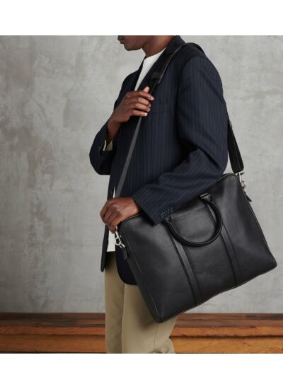 Quel type de cuir est utilisé et comment cela impacte la qualité ? Ce porte-documents est en cuir de vachette pleine fleur grainé, reconnu pour sa robustesse et son aspect élégant qui se patine avec le temps, garantissant durabilité et style raffiné.