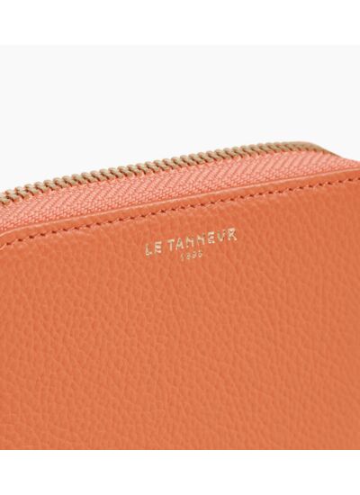 Porte-monnaie zippé marqué Le Tanneur. Sécurité anti-RFID.Cuir de vachette pleine fleur grainé. Doublure polyester Le Bleu.2 soufflets et 2 compartiments cartes.Accessoires métalliques finition doré clair.Largeur : 10 cm x Hauteur : 8 cm x Profondeur : 1 cm