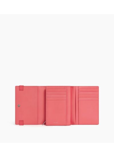 Le portefeuille Emilie dispose de 4 poches plates, 10 compartiments pour cartes, 1 poche zippée pour la monnaie, 2 soufflets pour les billets et une poche plate arrière, offrant une organisation optimale.