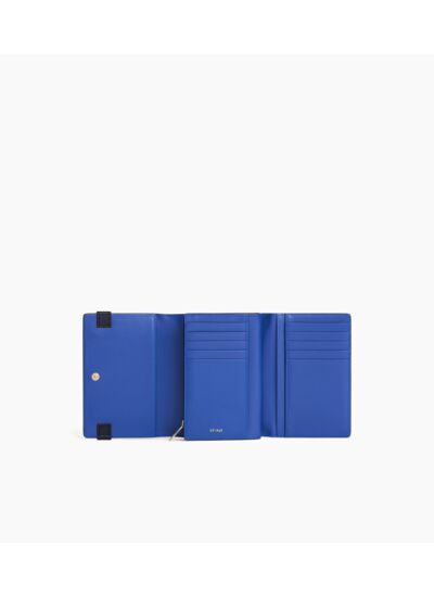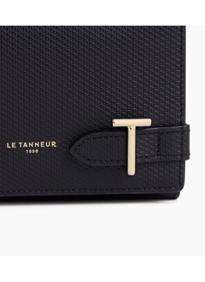 Portefeuille avec double T signature, fermeture pression et poche monnaie zippée. Dispose d'une protection RFID.Cuir de vachette signature T. Doublure textile Le Bleu.4 poches plates, 10 compartiments cartes, 1 poche zippée 2 soufflets. 1 poche plate arrière.Accessoires métalliques finition doré clair.Largeur : 14 cm x Hauteur : 10 cm