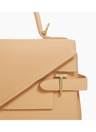 Quels détails distinguent ce sac à main Emilie ? Le sac se distingue par sa double fermeture à rabat, sa bijouterie T signature et le marquage Le Tanneur, ainsi que ses accessoires métalliques finition doré clair qui apportent une touche raffinée et contemporaine.