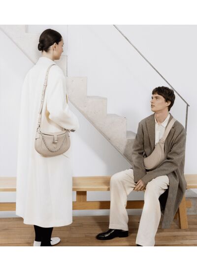 Quels matériaux composent le sac banane Noah ? Le sac est fabriqué en cuir de vachette pleine fleur, combinant cuir grain buffle et cuir lisse, assurant robustesse et élégance. Sa doublure est en textile Jacquard noir pour une finition soignée.