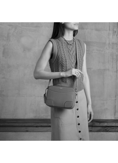 Comment porter le sac Romy ? Ce sac bandoulière moyen modèle se porte aussi bien à l’épaule qu’en croisé grâce à sa bandoulière ajustable, offrant confort et adaptabilité à toutes vos tenues.