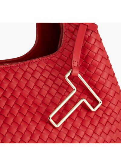 Sac porté épaule avec charms T signature finition doré clair.Cuir de vachette pleine fleur tressé. Doublure textile jacquard.1 poche zippée, 1 poche plate avant et arrière.Accessoires métalliques finition doré clair.Largeur : 29 cm x Hauteur : 22 cm x Profondeur : 12 cm