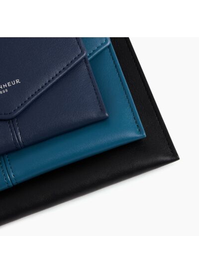 Trio d'enveloppes avec poche plate au dos et marquage Le Tanneur finition argent. Dispose d'une protection RFID.Cuir de vachette pleine fleur lisse. Doublure textile Le Bleu.1 grande enveloppe pouvant contenir un Ipad mini avec 1 poche plate dos. 1 moyenne enveloppe pouvant contenir 1 passeport avec 1 poche plate dos. 1 petite enveloppe pouvant contenir des cartes et 1 poche plate dos.Accessoires métalliques finition argent.Largeur : 23 cm x Hauteur : 16 cm x Profondeur : 11 cm