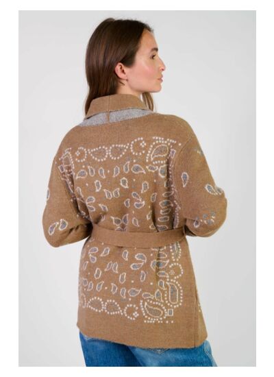 Coupe droite, manches longues, type de veste détente, motif cachemire. Marque : Le temps des cerises.