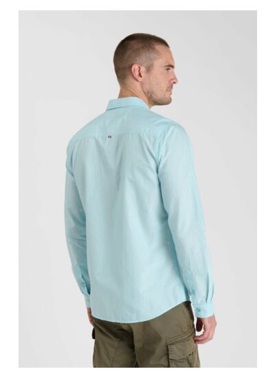 Col classique, coupe droite, fermeture boutonnée, manches longues avec poignets boutonnés. Tissu agréable au porter, motif rayures. Style city. Marque Le temps des cerises.