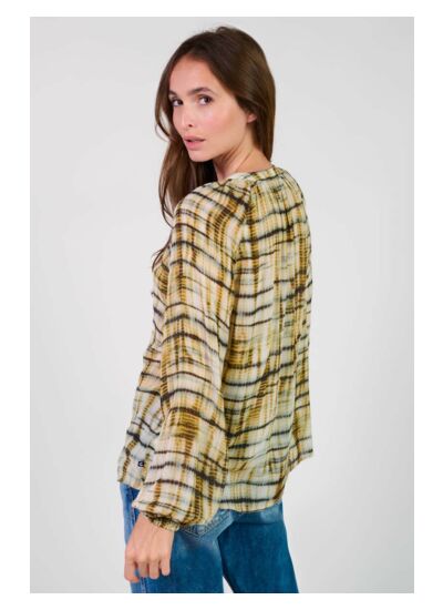 Conçue pour accompagner vos journées urbaines, cette chemise légère se distingue par ses manches longues et ses poignets élastiqués qui garantissent une liberté de mouvement optimale. Son tissu fluide et sa fermeture boutonnée facilitent l’enfilage tout en sublimant votre silhouette avec naturel. Le tie and dye, tendance et unique, fait de chaque pièce un véritable statement mode.