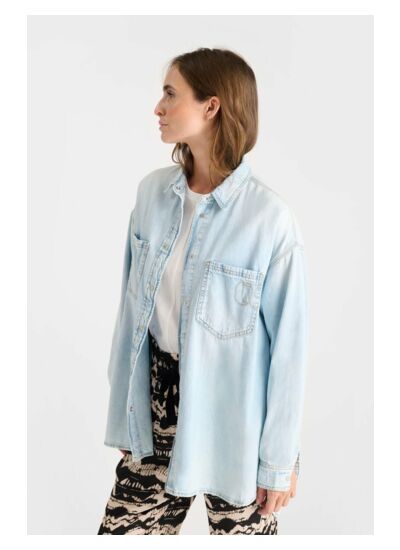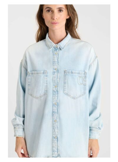 Col classique, coupe boyfriend ample, fermeture pressionnée, manches longues avec poignets pressionnés, tissu en jeans uni. Marque : Le temps des cerises.