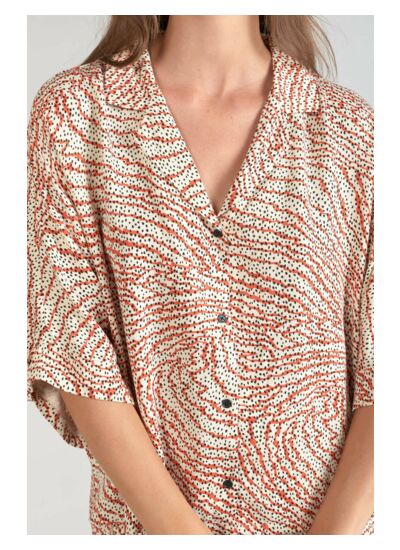 Col classique, coupe boyfriend ample, manches courtes, fermeture boutonnée, tissu doux, motif animalier. Style city signé Le temps des cerises.