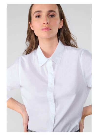 Col classique, coupe droite, manches longues avec poignets boutonnés, fermeture boutonnée. Tissu agréable au toucher, motif brodé subtil. Style business affirmé, marque Le temps des cerises.