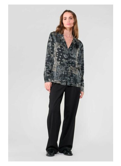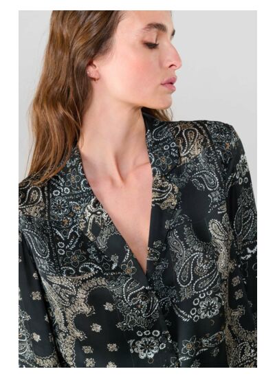 Col classique, coupe droite, fermeture boutonnée, manches longues avec poignets boutonnés. Tissu fluide imprimé cachemire. Style city. Marque : Le temps des cerises.