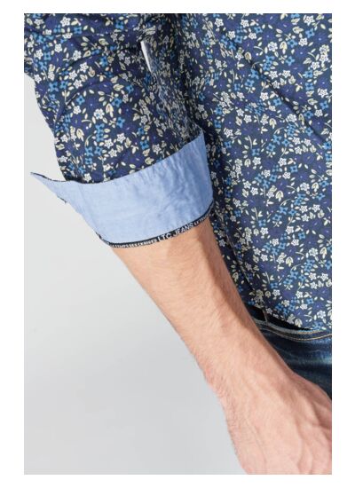 Col classique, coupe droite, fermeture boutonnée, manches longues avec poignets boutonnés. Tissu léger à motif floral, style city. Marque : Le temps des cerises.