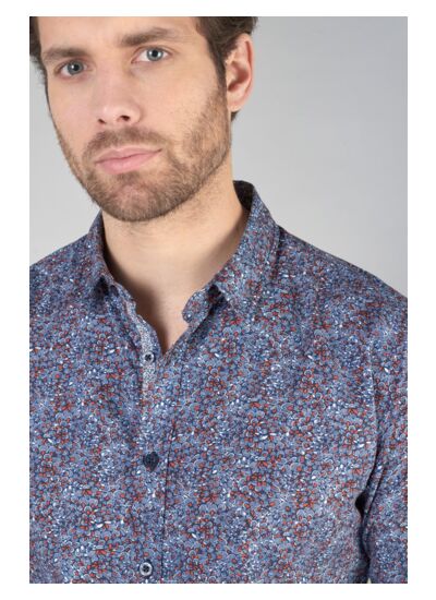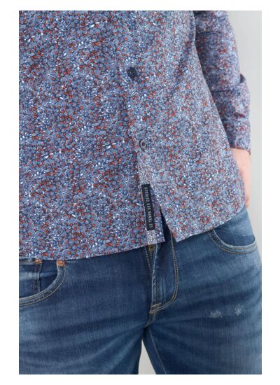 Col classique, coupe droite, fermeture boutonnée, manches longues avec poignets boutonnés. Tissu agréable au toucher, motif graphique, style city. Marque : Le temps des cerises.