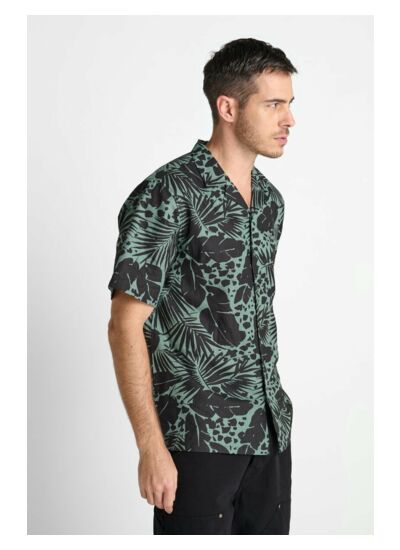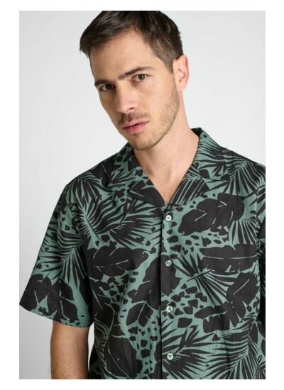 Le temps des cerises signe cette pièce avec un tissu agréable, une coupe droite, un col classique, des manches courtes, une fermeture boutonnée et un motif hawai distinctif qui fait toute la différence.
