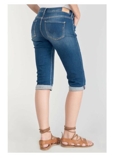 Toile très stretch pour un confort maximal. Coupe pantacourt avec hauteur de taille standard. Fermeture zippée. Tissu en jeans uni. Marque : Le temps des cerises.