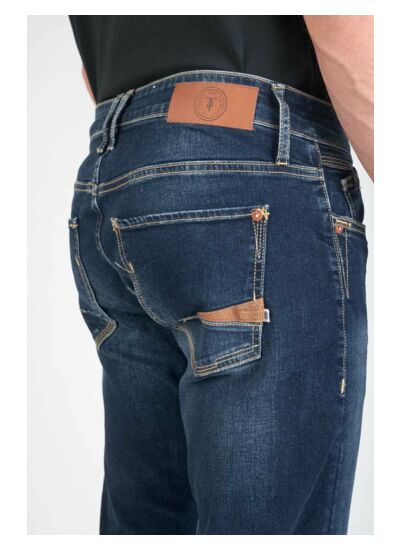 Toile stretch pour un confort extensible, coupe droite adaptée aux cuisses sportives, hauteur de taille standard, forme hanche resserrée, forme cuisses/genoux droite, forme chevilles droite, fermeture zippée YKK personnalisée LTC, jacron en cuir.