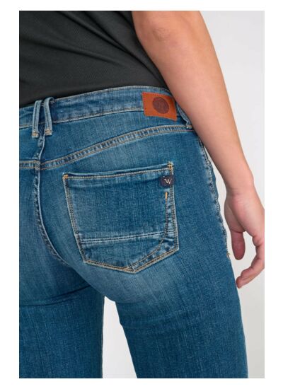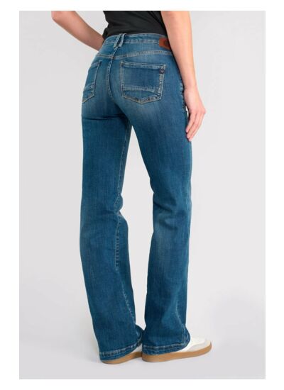 Ce jeans fait partie de la gamme Héritage, la plus travaillée de la marque Le Temps des Cerises. Il est confectionné dans une toile stretch avec une coupe bootcut, une hauteur de taille standard, une forme de jambe évasée et une fermeture zippée YKK personnalisée LTC. Longueur : 34.